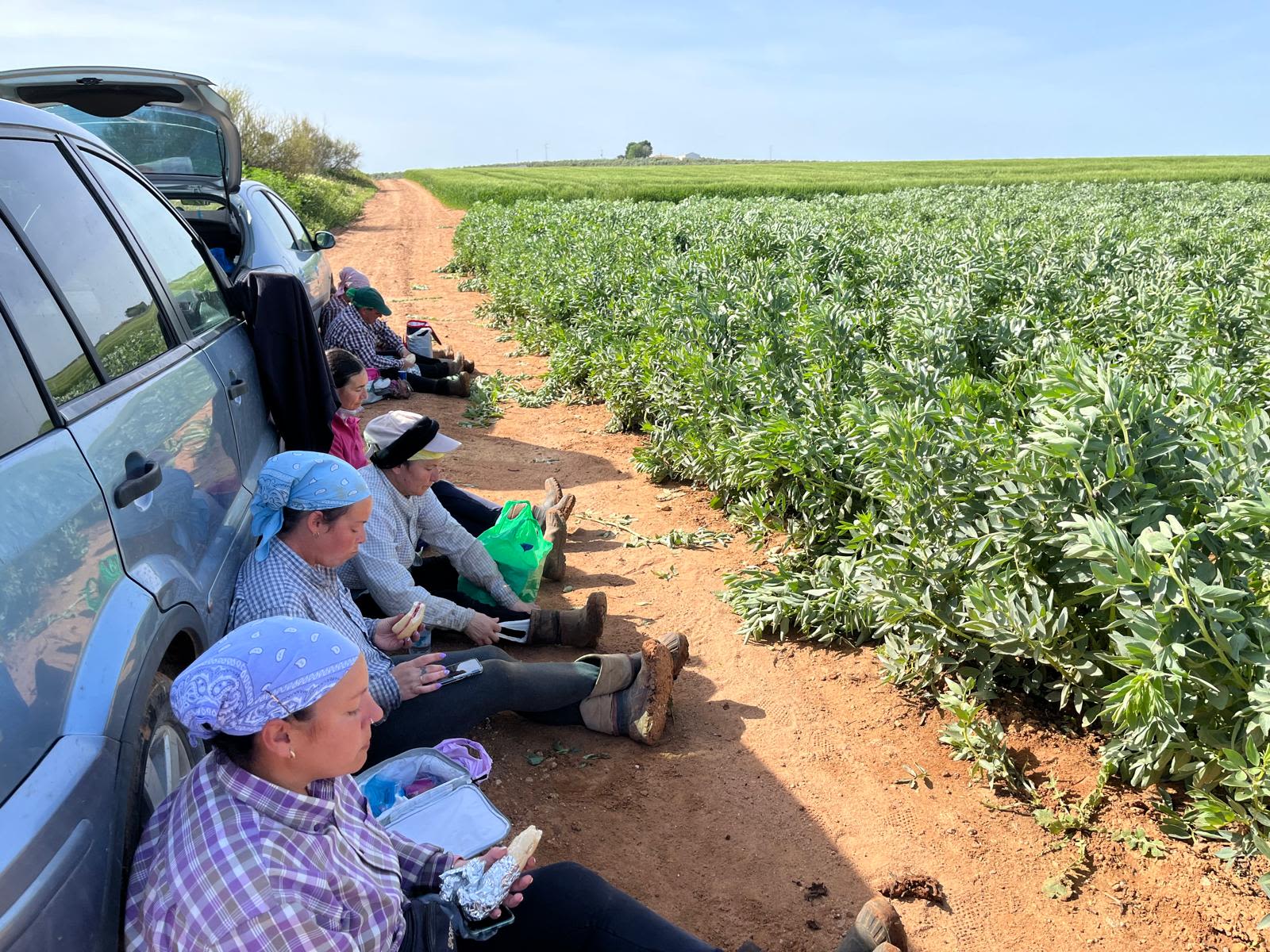 Cada día, alrededor de 100 jornaleros se dividen en cuadrillas y trabajan de 9 de la mañana a 3 de la tarde cosechando cultivos como las habas. Con cestas en mano, estos trabajadores se adentran en los campos, manteniendo vivo el legado de sus padres y abuelos.